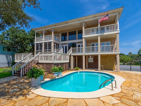 Newly remodeled 3 Story home with Elevator and many Custom upgrades. On lovely deep lot recently landscaped has wide water frontage, gunite pool and fountain with beach and fire pit. 4 BR's or 3 with Den/game room 2 closets and deep freezer, 4 1/2 BA's and upstairs Office. Beautiful HW floors on main level, Primary has large BA with spa features and main level BR with BA, both are ensuite. Large high ceiling greatroom with many windows/electric blinds and built in's, fireplace. Kitchen/bar with new Brazilian countertops, Sub-Zero fridge, and Wolf cooktop. Four covered balconies, deck and a screened porch with great views of the water and sunsets. New pool and well pump for irrigation system, new chimney and dock sidewalk and large outdoor covered area . Buyer to verify all information during due diligence.