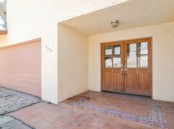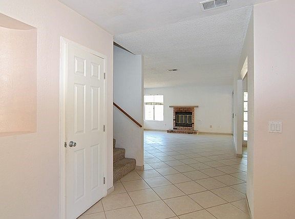 Unique stucco home with Spanish tiled roof, stone driveway, and lush foliage. Double doors and multi patterned tile work meet you inside and outside the front door. Inside the tile has been skillfully laid at diagonal with a fireplace in the living room. The kitchen has tiled counters and lots of natural light. Raised sun room. Fabulous covered patio with tile. The home offers 1,738 square feet with 3 bedrooms and 2.5 bathrooms. Attached 2 car garage. This is a great home located in a very safe area. Great investment.