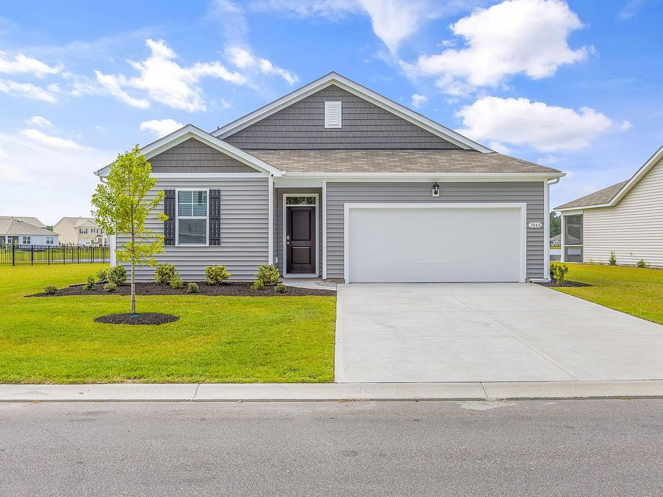 Welcome to 3048 Fair Ridge Way Conway in the new community Ridgefield. This practically brand new home was finished in 2024, offers 3 bed, 2 bath, granite countertops, stainless steel appliances, gas range, newly installed irrigation system around the home, gutters, screened in back porch and a private scenic lot that overlooks the large pond with a fountain. The home has been freshly landscaped with brand new mulch in all the beds. This homes offers a large .21 acre lot with common area to the left of the house giving you ample separation and privacy between your neighbors. As you enter the home you will notice the high ceilings throughout, foyer area that leads to your first 2 full size bedrooms with fresh new carpet and full size bathroom. The rest of the house offers LVP flooring throughout, large living space that flows into a kitchenette area. Your kitchen welcomes a breakfast bar area, pantry and tons of countertop and cabinet space. The expansive master bedroom is located off the back of the house, with a full size bathroom with double vanity step in shower and walk in closet. There is also a full size laundry room, lots of closets throughout, tankless hot water heater for energy efficiency, and a well kept 2 car garage for all of your vehicles and landscaping needs. Ridgefield is a desirable community located very close to Myrtle Beach/ Carolina Forest, Downtown Conway and in the prestigious Carolina Forest School districts. Close to all grocery stores, shops, restaurants, hospitals, and much more!! The community offers a playground, natural gas community, pool, and clubhouse. Looking for a new home, desirable community, low HOA, large lot, water views, great location to everything, look no further; schedule your showing today!! Seller is a licensed Realtor!