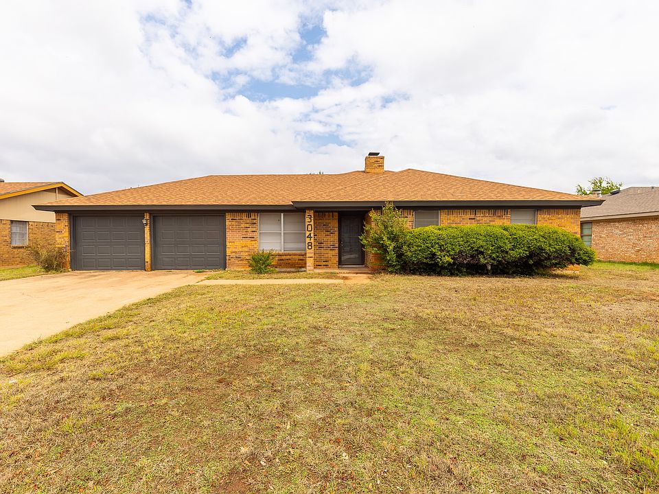 Discover this recently updated family residence situated on a quiet cul-de-sac. The front flex room offers versatility, serving as a formal dining area, playroom, office, or potentially an additional bedroom. The home includes multiple built-in storage solutions. The primary bedroom boasts an en-suite bathroom, a walk-in closet, and direct access to the covered porch, perfect for enjoying morning coffee. The garage provides ample storage with two distinct garage doors. The spacious backyard features a lovely covered patio area.