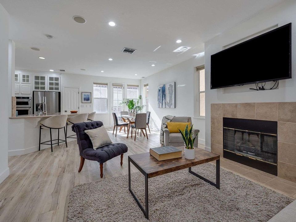 Welcome to this beautiful end corner unit designed single-family home nestled in the sought-after Communications Hill community! With 2,411 square feet of bright, open living space, this stunning residence boasts 4 bedrooms and 3.5 bathrooms, thoughtfully crafted for both comfort and style. Step into the inviting living room, where natural light pours in, complemented by a cozy gas log fireplaceperfect for unwinding. The spacious, chef-inspired kitchen opens seamlessly into the living room, featuring a granite countertops, breakfast bar, ample cabinetry, a gas cooktop, built-in microwave, and an expansive pantry. On the second level, youll find two luxurious master suites, each providing privacy, one with a fire place and a impressive walk-in closet. The top floor offers two additional bedrooms with breathtaking views of the East Foothills, plus an ideal nook for a home office. Convenience abounds with a large utility room that includes washer/dryer hookups and a folding table, as well as a substantial walk-in pantry. The attached 2-car garage, equipped with an automatic opener, ensures easy access, and the serene patio area offers a perfect spot to relax and enjoy the outdoors. This home combines style, functionality, and a prime locationyour dream home awaits!