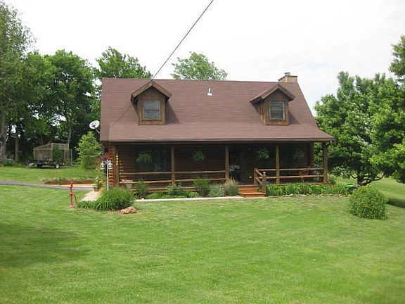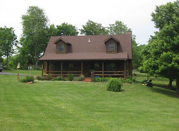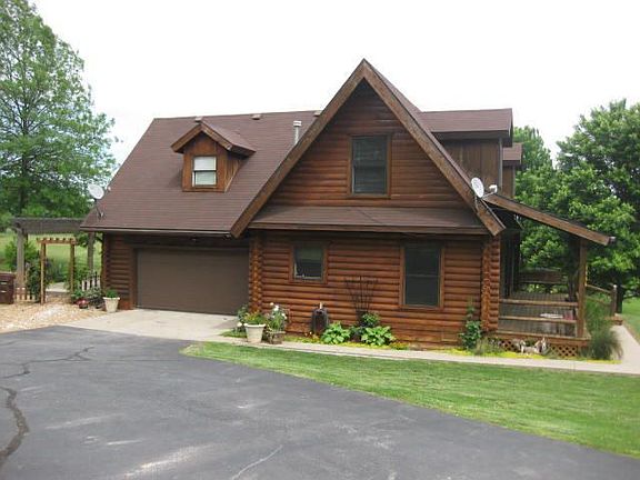 FANTASTIC LOG HOME ON 1.27 ACRES!! You will LOVE the gorgeous setting for this amazing 1.5 story home built in 1995! This unique home offers 1 bedroom, 1 bath, large Great Rm w/fireplace, plus kitchen/dining on main level. 2nd level offers 2 bedrms (Master & another), 1 bath, the laundry area, plus landing overlooking the Great Rm below. Bonus of stairway from kitchen to very tall crawl space (could be considered basement/storm shelter), w/warehouse racks for storage. So much that is NEW since 2010--roof, well pump, Green House, gar door opener, water softener, beautiful Pergola, stained log exterior, hardwood floors in Great Rm, tile in kitchen & bath, and refrigerator! Seller has created an absolute PARK w/flower beds, raised garden, Pergola, greenhouse, boat cover & so much more!!