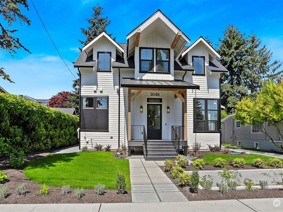 Outstanding new modern Farmhouse fits perfectly into this established Sunset Hill location. Checking every box, this home has been thoughtfully designed & crafted with quality & care. Enter to soaring ceilings, hardwood floors & warm natural light streaming through huge windows. Striking kitchen w/oversized island, Thermador appliances, large gas cooktop, butler’s pantry. Upstairs, gorgeous primary w/tons of light&space, WIC, and huge soaking tub. 2 additional bedrooms & sweet study/wfh space. Downstairs, massive media room&wet bar, 2 more rooms. Interior living flows out to covered&heated deck&private backyard. Parking pad&detached garage w/private entrance through mud room to kitchen. Super close to restaurants, parks, and beach stairs.