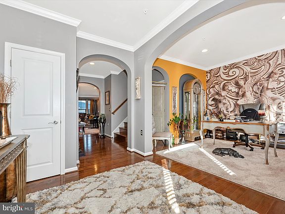 Facing due East and Nestled in the prestigious Mill Island at Worman's Mill, this exquisite End-Unit Townhouse embodies the perfect blend of luxury and comfort. This gorgeous home showcases a stunning French Colonial architectural style, accentuated by a harmonious combination of stone and vinyl siding that exudes timeless elegance. Step inside to discover a meticulously designed interior that spans 2,270 square feet, featuring three spacious bedrooms and three and a half opulent bathrooms. The open floor plan invites natural light to dance across the rich hardwood flooring, creating an inviting atmosphere throughout. The gourmet kitchen is a culinary enthusiast's dream, equipped with stainless steel appliances, built-in microwave, and wall oven. The expansive granite island and countertops provide ample space for both meal preparation and casual dining, while the adjoining breakfast area and combination living/dining spaces ensure seamless entertaining. Retreat to the luxurious primary suite, complete with trayed ceilings, a walk-in closet, and a spa-like bathroom featuring a soaking tub and a walk-in shower, offering a private sanctuary for relaxation. The 2 additional bedrooms are generously sized, each thoughtfully designed to provide comfort and privacy. The fully finished basement adds versatility to the home, making it perfect for a fourth bedroom, family room, home office, or entertainment area. A cozy gas fireplace in the living area creates a warm focal point, ideal for intimate gatherings. The private rear yard is extremely low-maintenance, featuring extensive hardscaping, and provides a sophisticated outdoor space for entertaining or quiet reflection. FUN FACT: The permits have already been approved to expand the fence to include the grassy area on the side of this home. Special perks of owning an end unit, which also includes extra parking spaces for guests in the rear driveway! The community is quiet, has amenities that include a commercial square with restaurants and shops, and a clubhouse. The stately clubhouse is situated on a bluff overlooking the Tuscarora Stream Valley Park and is steps away from the Monocacy River and Appalachian Trail. It features three swimming pools, tennis and pickleball courts, a basketball court, a playground, a library, a grand center hall with a barrel-vaulted fresco-painted ceiling, a dance and exercise studio, a billiards room, and locker rooms. This turnkey masterpiece is in one of the best neighborhoods in Frederick, Worman's Mill at Village Center! Minutes to Rt. 15, I-270, and I-70. Easy to enjoy everything downtown Frederick has to offer...shopping, dining, local pubs, breweries, and cultural events. Frederick has it all! Schedule your showing today!