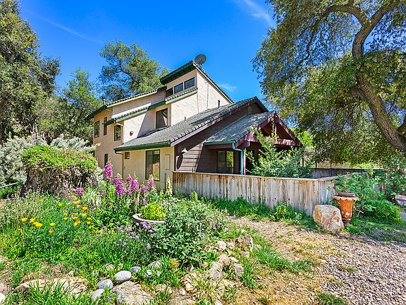 Come see this rare working Horse and Animal Ranch equipped with a 2 acre fully fenced pasture, 2 Mare Motels, with Electrical, and water, a hay barn, 2 Green Houses, and a 2 car garage with 220 and 210 amp. The 3 bedroom 2 bath Home has a updated Kitchen and Appliances, Vaulted ceilings, lots of light and passive solar. With a total of 5 acres this is a peaceful and tranquil Oak tree studded, private gated estate. The 2130 square foot home, is sprinklered throughout, with ceramic tile floors downstairs.