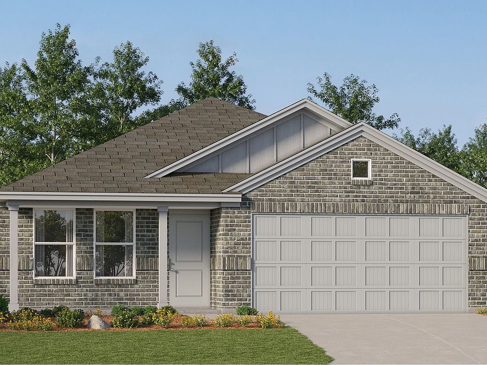 This new four-bedroom home offers convenient single-story living. A bedroom is secluded near the front of the home, leading to an inviting and spacious open-concept layout shared between the kitchen, dining room and family room. Three additional bedrooms are tucked away to the side for improved comfort and privacy, including the lavish owner's suite at the back of the home with a full bathroom and walk-in closet.