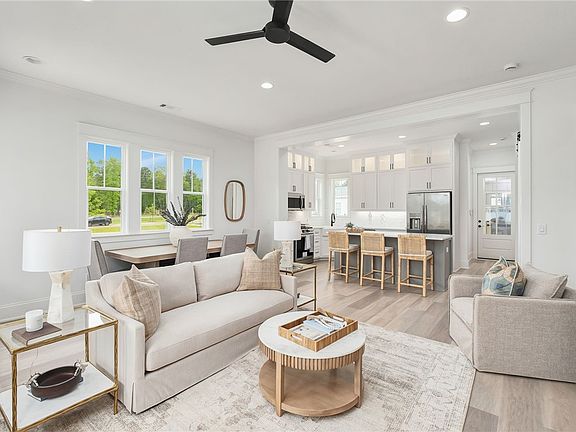 This Ross Bridge model home is 2B/2B, 1200 sq.ft. located in The Yards section of National Village. Ideal home for golf weekends, pickleball and spa retreat! You will have to see this quaint open concept cottage with 10' ceilings w/8' doors, crown molding & quartz countertops and Craftsman trim on doors & windows throughout home. Spacious island and large walk-in pantry with barn door, upper cabinetry to the ceiling with lighting in kitchen. National Village is an active community with stunning craftsman homes and all the amenities resort-style living can afford. Come visit National Village today!