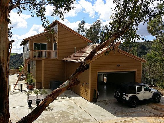 Panoramic trabuco canyon view for miles and on clear days you will see the pacific ocean on the horizon. Completely remodeled in 2014. Beautiful 360 degree panoramic vistas and breathtaking views from every room. Located in a peaceful location with a private access road. This home features stunning mountain and canyon views from the inside and out. The living room is open with vaulted ceilings, that is light and bright. Bathrooms are beautiful with travertine floors and jacuzzi tubs. French door leads to a fabulous hilltop deck with 360 degree views. Large open kitchen with center island with the beautiful view from kitchen windows and loads of cabinet space and stainless steel appliances. Beautiful wood floors throughout the downstairs. Brand new ac unit and electric panel, brand new windows, new outdoor siding and paint throughout. Two car garage with washer/dryer connection. As much as three or four parking spots around the garage. Sliding glass door opens to a huge view deck to a stunning outdoor entertaining and dining.