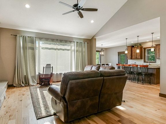 This exquisitely constructed ranch-style home offers luxurious lake living just steps from the shared dock—complete with your own private slip. Designed with high-end materials and exceptional attention to detail, the home welcomes you through a gracious foyer that flows into the living room and spacious gourmet kitchen, complete with custom rustic alder cabinetry by Larson Cabinets and stunning Trend Stone granite countertops. A formal dining area and main-floor suite with a walk-in closet enhance the home’s comfort and elegance. The attached garage is finished to feel like an additional rec or family room, perfect for entertaining or relaxing. Enjoy the outdoors year-round with a covered BBQ patio, complete with a built-in pizza oven, and a detached heated workshop for hobbies or storage. The lower level provides overflow space for guests and a large rec area. The features list is long, and the lifestyle is unmatched. Don’t miss your chance to own this exceptional lake property!