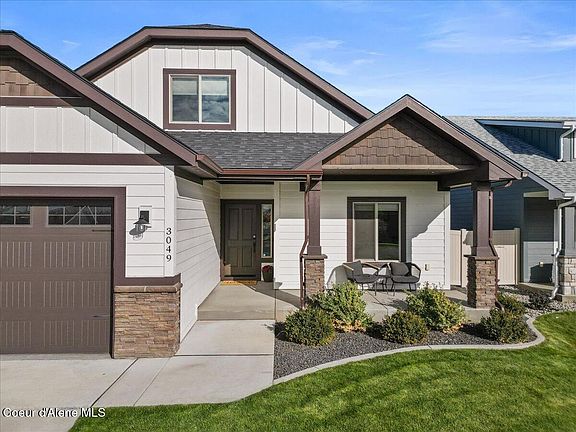 Welcome to this stunning 4-bed, 3-bath home in the desirable Wheelbarrow Estates community! Step inside to an inviting open-concept layout featuring vaulted ceilings, LVP flooring, and a cozy gas fireplace with a modern stone surround. The spacious living area flows into a bright kitchen with quartz counters, a large island with breakfast bar seating, custom cabinetry and stainless steel appliances. The main-level primary suite is a retreat with a tiled walk-in shower, dual-sink vanity, and walk-in closet. Two additional bedrooms and a full bath complete the main floor, while the upstairs full bathroom and bonus room offers a fourth bedroom or flex space. Enjoy the covered patio overlooking the fully fenced yard with sprinklers front and back, wiring for a hot tub, and RV parking! Smart features include built-in Cat 6 cabling, a Brilliant intercom and camera system, smart thermostat, and central air. Conveniently located near schools, parks, and shopping!