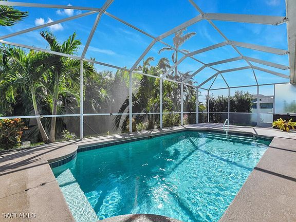 Located in a highly desirable area of SW Cape Coral, this spacious 4-bedroom plus den, 2-bathroom pool home offers the best of Southwest Florida living. The expansive outdoor space features a large screened lanai and sparkling pool, perfect for relaxation and entertaining. Inside, the home boasts a desirable split floor plan with an impressive primary suite, complete with a custom California closet. Modern touches include plantation shutters on the front, primary bedroom, and guest bath doors, new blinds throughout, and upgraded appliances, including a newer stove and refrigerator. Recent updates include a new pool heater, a 2020 roof, and a 2022 AC unit. With all assessments fully paid, this home is move-in ready. Bonus: All wall-mounted TVs convey, except for the living room TV. Don't miss out on this exceptional home—schedule your private showing today! A 1-year home warranty from a third-party warranty company of sellers choice will be purchased at closing for the new buyers.