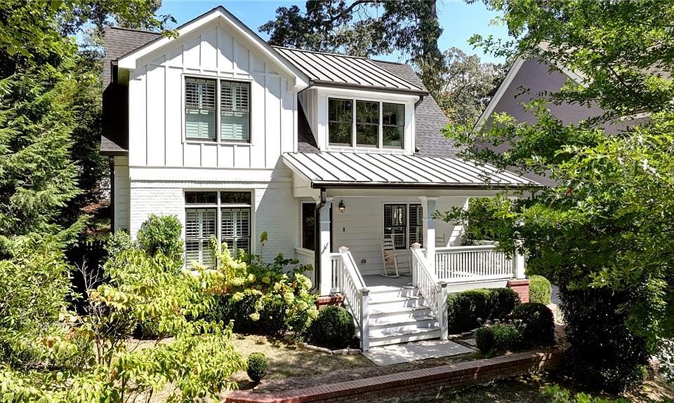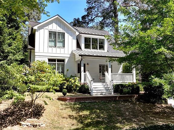 Don't miss this charming two story Ashford Park farmhouse completely rebuilt in 2017. The welcoming front porch draws you inside to the formal dining room on your right and the sitting room/study to your left. As you walk towards the back of the home a convenient main level guest suite offers a custom closet and full bath. The rear of the home is open to the kitchen and family room which provide great space for gathering. Enjoy your custom kitchen with stainless steel appliances, double ovens, custom designed walk-in pantry and large island overlooking the family room. Natural light shines through the back wall of windows and door to the backyard and patio. A dedicated laundry room is on the main level. The fabulous beamed primary suite is accompanied by a large walk-in custom closet and bathroom with double vanities; free standing tub and private shower. Two additional bedrooms upstairs share a bath with a tub and shower combo and also have custom closets. The peaceful backyard is totally fenced with a firepit, plenty of room for entertaining, and a moveable gate across the driveway allowing for more privacy. Features include 9 foot ceilings upstairs and down, hardwoods throughout except secondary bedrooms, Ring security camera front and back, hardi plank siding, zoned HVAC-2 systems, and E thermostats.