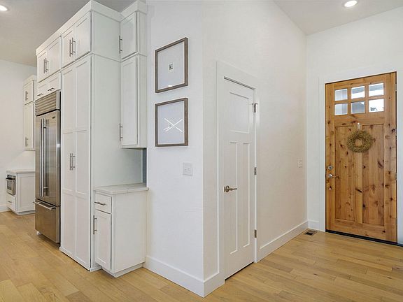 A home that's all about the details. From the moment you arrive, every element sets this residence apart. The commercial-grade MAC metal siding delivers a bold, modern look rarely seen in residential homes. Paired with stone accents, this home is built to last with a maintenance-free exterior. Enhanced curb appeal includes metal roof accents, an 8-ft front door, Andersen windows, and a fully sodded, irrigated, and landscaped yard.Inside, be greeted by soaring 11-ft ceilings and a wall of glass featuring a large picture window and slider, flooding the space with natural light and offering peaceful views with no neighbor behind you. Blonde engineered hardwoods flow throughout, adding warmth and elegance. The chef's kitchen impresses with stacked, backlit cabinets, a grand vent hood vented to the exterior, Sub-Zero refrigerator, slide-out microwave drawer, soft-close cabinetry, farmhouse sink, walk-in pantry, and an oversized island perfect for entertaining.The primary suite (16x17) features vaulted ceilings, a double vanity, and a walk-in shower with bench, niche, and high window for a bright, airy feel. A 100 sq. ft. walk-in closet connects directly to the laundry room with extra cabinetry, hanging space, wash sink, and work area. The mudroom off the garage includes an extra-large bench for added functionality.Additional highlights: spray foam insulation (including garage), insulated garage door, solid core doors, whole-home audio, hot/cold spigot in garage, and a tiled guest bath. Enjoy over 300 sq. ft. of covered outdoor living space--perfect for morning coffee or relaxing sunsets. Every inch of this home reflects quality craftsmanship and thoughtful design built to impress.