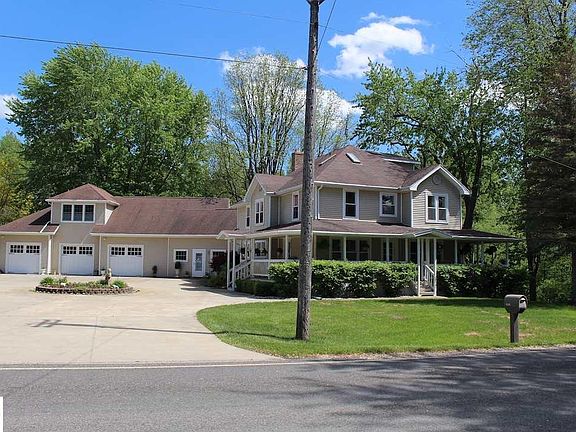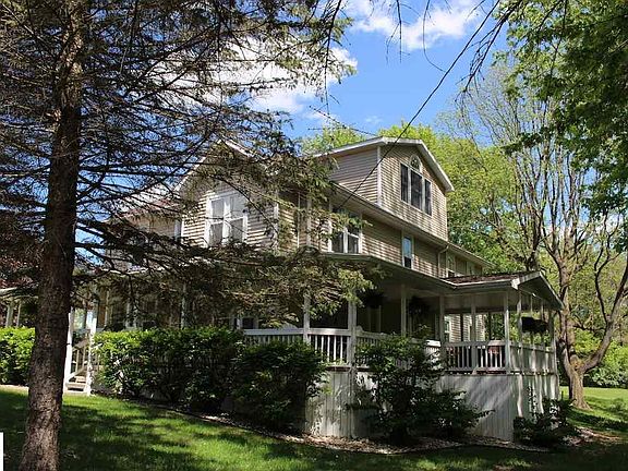 This classic, foursquare, Craftsman-style three story home, fondly known as the Buttonville Inn, boasts around 5,000 sq ft of living space. The main floor features the main kitchen with a fireplace, three separate dining areas and two living areas. The large living area features a fireplace, kitchenette and eating area spacious enough to include the extended family during get togethers. Speaking of extended family, they won't ever have to stay in a hotel! There is a finished basement, 5 bedrooms with tons of extra space and the garage has is a massive finished area above including a full bathroom. The second floor features three bedrooms- two master suites with bathrooms in each and another large bedroom on the other end of the hallway next next to the laundry room and bathrooms. On the third floor is another spacious bedroom and bathroom as well as ~250 sqft of living space on the third floor. The basement features a kitchen, bedroom, living area, laundry room and storage space. Utilities are also in the basement. There is much more to this house than what meets the eye. Even more land included now!The kitchen is a large country kitchen with a fireplace. There is a covered porch. The property is adjacent to the over 36 miles of rail trail for hiking and biking. The Soaring Eagle is within 20 minutes. Walk Score of 0 out of 100. This location is a Car-Dependent neighborhood so almost all errands require a car. Somewhat Bikeable Score of 40. MEASUREMENTS ARE APPROXIMATE.