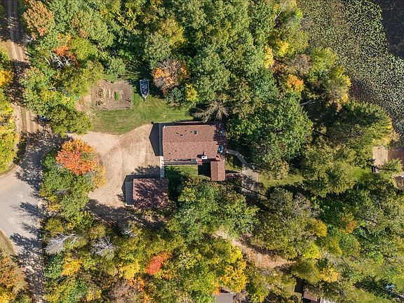 Tucked in the trees on Praire lake, this year-round home pairs big water views with privacy. The main level features a sun-splashed great room with vaulted, tongue-and-groove pine ceilings, a stone gas fireplace, and full-height lakeside glass that opens to an expansive wraparound deck with custom railing. A screened porch on the same level (connected by the deck) lets you live outdoors bug-free all summer. The finished walkout lower level adds a huge rec room with patio access, perfect for game days and overflow guests. Gentle slope to the shoreline, landscaped lawn, and a concrete path to the lower patio make lake life easy.