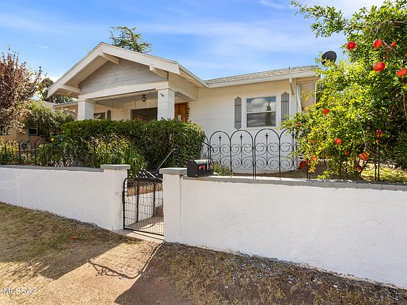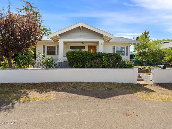 Welcome to this charming 2-bedroom, 1-bath Craftsman bungalow, built in 1915, nestled in the desirable Warren area of Bisbee. From the moment you step inside, you'll be greeted by the warmth of classic built-ins in the formal dining room and the inviting, fresh feel of new carpet. Main bedroom offers a large walk-in closet, while the bathroom boasts a luxurious jetted tub and separate shower for your comfort. Beyond the main living area, a large, unfinished Arizona room provides plenty of potential for expansion, and the adjacent laundry area complete with washer and dryer offers added convenience. The backyard is a private oasis, fully fenced with a brick BBQ area, grill is included, and spacious patio, perfect for entertaining or simply relaxing. Imagine the possibilities with the large concrete pad, ideal for a gazebo or outdoor retreat, and the tool shed, equipped with two workbenches. Additionally, there's a separate building with electricity, perfect for an art studio, workshop, home office, playroom or even an extra bedroom, you choose. The front yard features lush landscaping, including a pomegranate tree, desert willow, and vibrant rose bushes, adding to the home's curb appeal. Situated just minutes from the Warren Ball Field, Vista Park, and local favorites like the Saturday Farmers Market, BallPark Brewing Company, and the Copper Queen Hospital, this home offers the perfect blend of historic charm and modern convenience. And with Old Bisbee's lively Gulch only an 8-minute drive away, this cozy bungalow is the perfect place to call home.