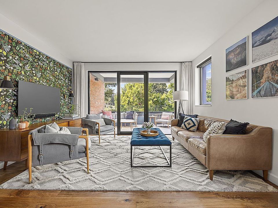 Expansive, designer-curated three bedroom condo with a large private balcony directly overlooking the park-like oasis of Greenwood Cemetery.