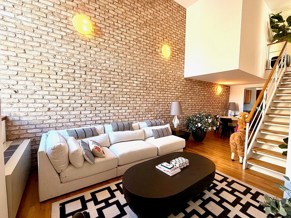 This beautifully renovated duplex residence offers 2 bedrooms, 2 bathrooms, and a versatile home office. The primary suite enjoys north and south exposures and features an en-suite bath, while the second bedroom faces south, filling the space with warm natural light throughout the day.