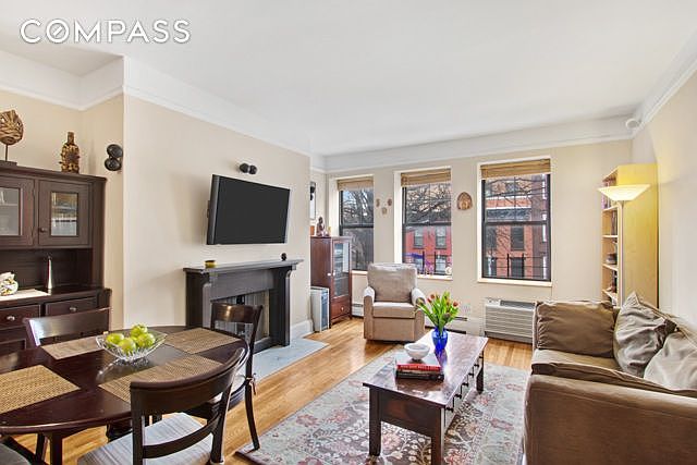 Park Slopes 5th Ave is where its at! Here's your chance to live in the ideal location in a fabulous floor through 2 bedroom, 1 bath co-op apartment. Bask in the glow of your own fireplace while relaxing in the living room or entertaining in the open kitchen/living area. There are two real bedrooms with customized closets for ample storage. The master has an ensuite bath with a jack and jill entrance off the hall for guests and ease. If you like outdoor space, this apartment has a private balcony off the second bedroom, a shared common garden as well as a common roof deck perfect for watching the sunset. The apartment also has its own washer/dryer, as well as a common laundry. Storage is included in the basement for no charge, plus a bike room! Enjoy the farmers market on the weekends and JJ Byrne Park across the street. Only two avenues away from Whole Foods and close to great shops, local restaurants such as Stone Park Cafe, and Al di La Trattoria. Zoom into the city via the F, G and R train, or walk a short distance to Atlantic Terminal. Sorry CATS ONLY!