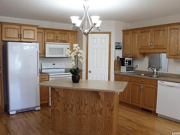 If you're tired of yard work & snow clearing it's time to consider this beautiful two bedroom, two bathroom Condo in Wilkie! 1263 sq ft with an attached garage. This unit is clean, very well cared, smoke & pet free. Large open floor plan with beautiful hardwood flooring throughout the main living area/ kitchen/ dining area/ bedrooms and hallway. An abundance of oak cabinets, island & walk-in pantry, built-in dishwasher & microwave hood fan as well as fridge & stove all included. Two nice sized bedrooms, primary bedroom has a 3 piece ensuite with a walk-in shower & a walk-in closet. Full bath has tub/shower. Double closets in second bedroom. All white interior doors. Just off the kitchen is the utility/laundry room and the entrance to the attached garage featuring pvc corrugated panels and access to the large crawl space w/tons of space to store your extra items ! Stackable washer, dryer, water softener all included. Check out the nice deck at the back of the unit where you can enjoy a barbeque and have a few plants! Other features include Central & all window treatments. Condo fees include property taxes, building insurance, water/sewer/garbage & recycle pick-up, reserve fund & yard maintenance. Move in, sit back and enjoy some relaxation! Call today for your private viewing!