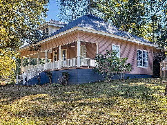 Built in 1900, this historic home features 3 bedrooms and 2 bathrooms on a spacious 2-acre lot. Interior highlights include a dedicated dining room with large windows, a kitchen with black-and-white tile flooring, and generously sized bedrooms. The primary bathroom offers a classic clawfoot tub. A large covered front porch provides a welcoming space for morning coffee or gathering with friends. An above-ground pool with surrounding deck offers additional outdoor enjoyment. The roof has been replaced (2023) and the property has brand new water heater (2025).