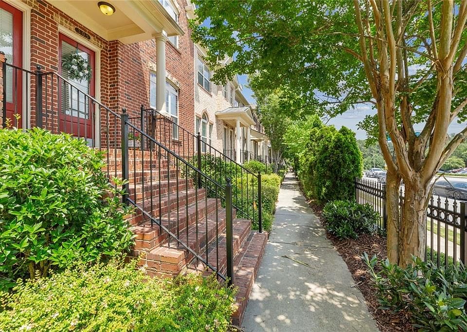 Start your next chapter in this 3-bedroom, 3-bath townhome featuring a light-filled, open layout where comfort meets convenience and every detail feels just right—perfect for both everyday living and easy entertaining.. From the moment you walk in, you can see clear through the main level—highlighting the seamless flow from living to kitchen to dining. A striking 60" fireplace creates a cozy centerpiece, while stunning hardwood floors run throughout the main level, stairs, and hallways. The kitchen is both functional and stylish, with a sleek Silestone island (and extra cabinet space underneath), stainless steel appliances, and plenty of room for gathering with family and friends. Upstairs, the primary suite is a peaceful retreat with beamed ceilings, cove lighting, a custom walk-in closet, and a spa-like bath with a glass-enclosed shower and double vanity. Modern cable railing adds a crisp, contemporary touch, and the finished terrace level includes a full bedroom and bath—perfect for guests, a home office, or flex space. Located in a gated community with a pool and dog park, and just minutes from Mercedes-Benz HQ, dining, shopping, and everything Sandy Springs has to offer.
