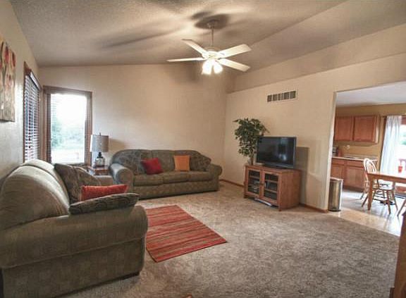 Small town living with easy commute to Des Moines. Newer ranch style home with vaulted kitchen, large living room and 3 bedrooms, oak woodwork, nice sized 2 car attached garage, newer carpet. 800 sq ft finish in basement (per seller) with family room, office and 3/4 bath. Sump pump with battery back-up. Large cul-de-sac. Fenced lot with storage shed.