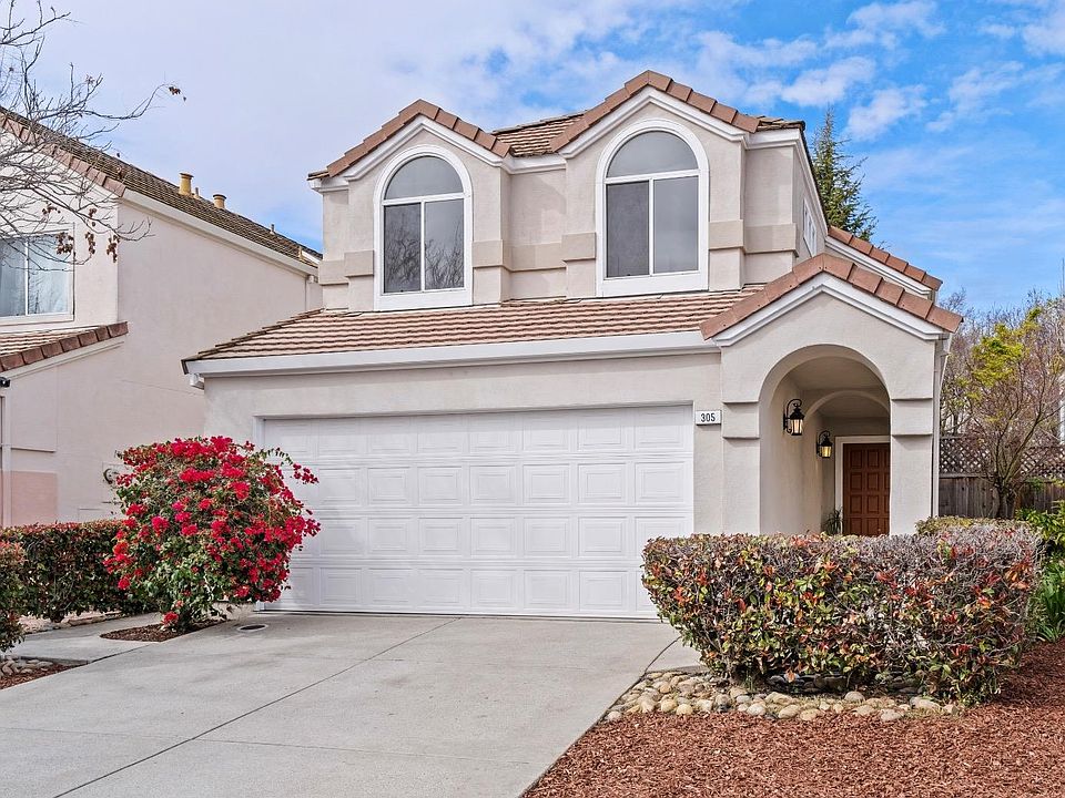 Welcome to 305 Aspenridge Dr! Enter into this rare floor plan through an extended breezeway, complimented by a Japanese Maple tree. The great room is impressive w/soaring ceilings & large windows that let in an abundance of natural light. The fireplace & arched ceiling details provide an elevated ambiance. Enjoy meals in the eat-in kitchen, or under the chic chandelier in the dining room. Both areas offer access to the low-maintenance backyard, which is flanked by 2 Japanese maples, providing umbrellas of shade on sunny days. The kitchen offers ss appliances, gas range, new flexible sink faucet, & freshly painted cabinets. The family room has ample storage w/2 closets & leads to a half bath & indoor laundry room. Upstairs are 3 well-appointed bedrooms w/airy vaulted ceilings. The hall bath incl. a shower/tub combo & tons of storage. The primary bedroom offers 2 closets & an en-suite bath, dual sinks w/a brand new countertop & faucets, makeup vanity, soaking tub, & separate toilet area. Other highlights incl. new light fixtures, marble details, fresh paint & carpet throughout the home, plus a 2-car garage. Well-located near Dixon Landing Park, the Great Mall, & the 237, 880, & 680 freeways - convenient for commuters. It also resides in the coveted Milpitas Unified School District.
