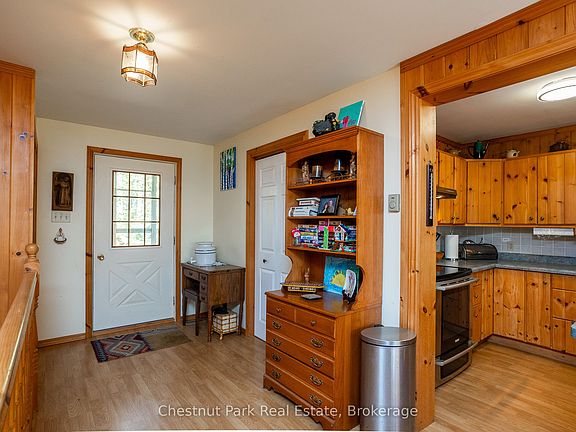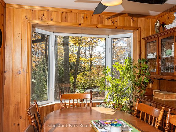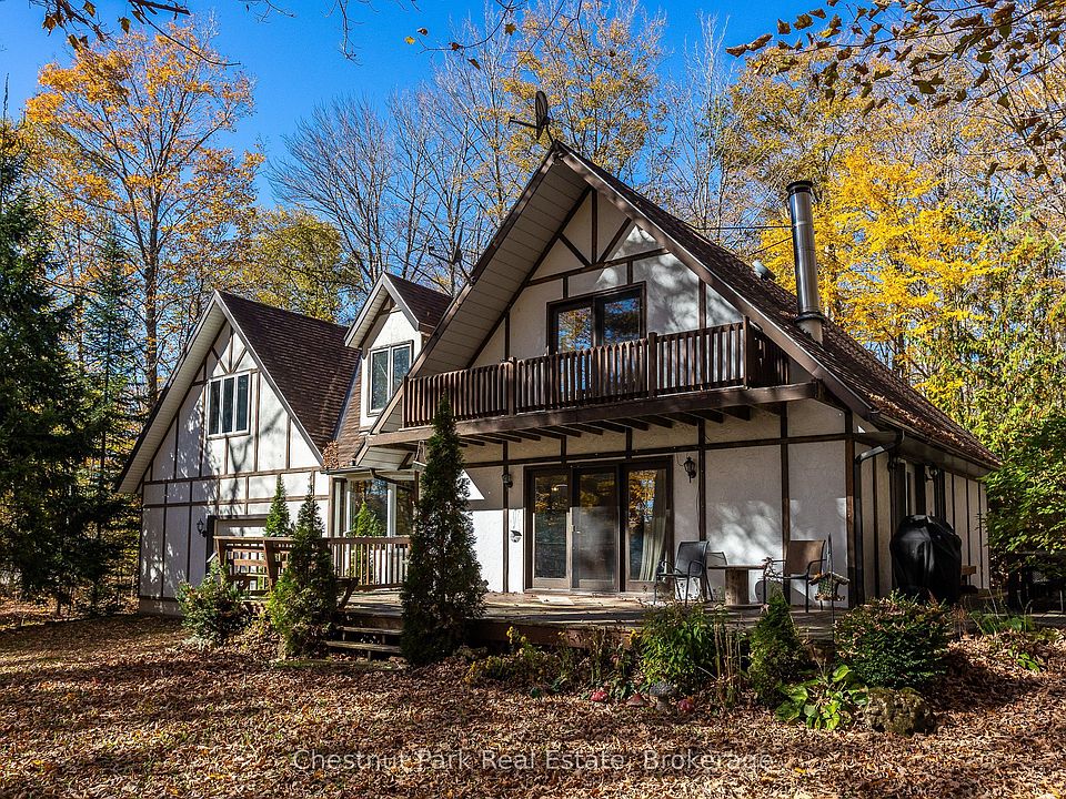 This charming Tudor-style, four-season home or cottage sits on a serene 2.3-acre hardwood lot, just minutes from a public boat launch on Miller Lake. Perfect Haven on the Bruce Peninsula for those seeking peace and privacy surrounded by nature with a seasonal lake view. Bright and welcoming, the home offers open living areas with large windows, hardwood floors, and a cozy wood stove. Enjoy main-level living plus 2 additional large bedrooms & 3 pc bath on the upper level. The 25' x 27' attached garage provides ample storage for water and land toys with large bonus space above for recreation or studio. Separate driveway with RV parking and hydro hook-up along with large storage shed with separate wood storage. Relax on the wrap-around deck with ramp access, wander your own woodland trails, or unwind by the fire pit under the stars. With perennial rock gardens and nearby access to beautiful Miller Lake for swimming, boating, and fishing-this tranquil property is ideal as a year-round home or relaxing getaway!