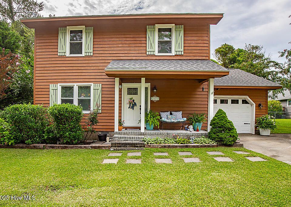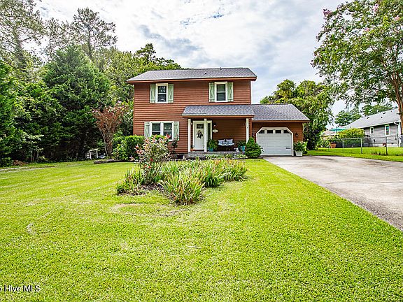 Well-kept 2-story one in one of Havelock's more popular neighborhoods is within walking distance of the elementary school, close to Walmart, several restaurants and easy access to Hwy 70. Current owners have remedied the moisture in the crawl space, installed LVP throughout the house; installed tongue in groove ceiling in the great room. The kitchen has been updated with granite counter/breakfast bar. All kitchen appliances will stay. The great room is large enough for both living and dining areas. All the bedrooms are upstairs with the laundry closet (washer and dryer will stay) in the hall for convenience. The back yard is fenced and very private. The 38' deck is large enough for outdoor cooking, entertaining and relaxing. Besides the single attached garage, there is a 24x13 detached garage/workshop with a separate unpaved drive on the left of the home. The seller will be removing the mirror on the landing, one wall mounted tv and the cameras before closing.