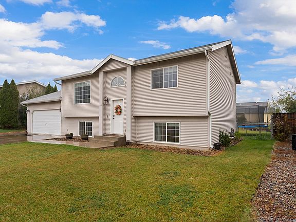 Meticulously maintained 3 bedroom, 2.5 bathroom split-level home, set within the scenic Lonepine View Estates, delivers an exceptional living experience. The upper level immediately impresses with vaulted ceilings, an open-concept design, and a flood of great natural light that enhances the bright living area and dining nook with deck access. The kitchen features stainless steel appliances and a central island for gathering. The main floor also hosts the primary suite complete with its own attached full bathroom. Descend to the lower level where a spacious second living area/bonus room awaits, providing a flexible zone for relaxation, hobbies, or play. This floor is completed by two additional bedrooms and a full bathroom, with direct access to the two-car garage. Outdoor living is elevated by an oversized back deck, perfect for alfresco dining and appreciating the mountain views while the fenced backyard features both open space and dedicated raised garden beds. Strategically located in South Kalispell, this home offers convenience with fast access to essential amenities, schools, a nearby park, and the local dog park.