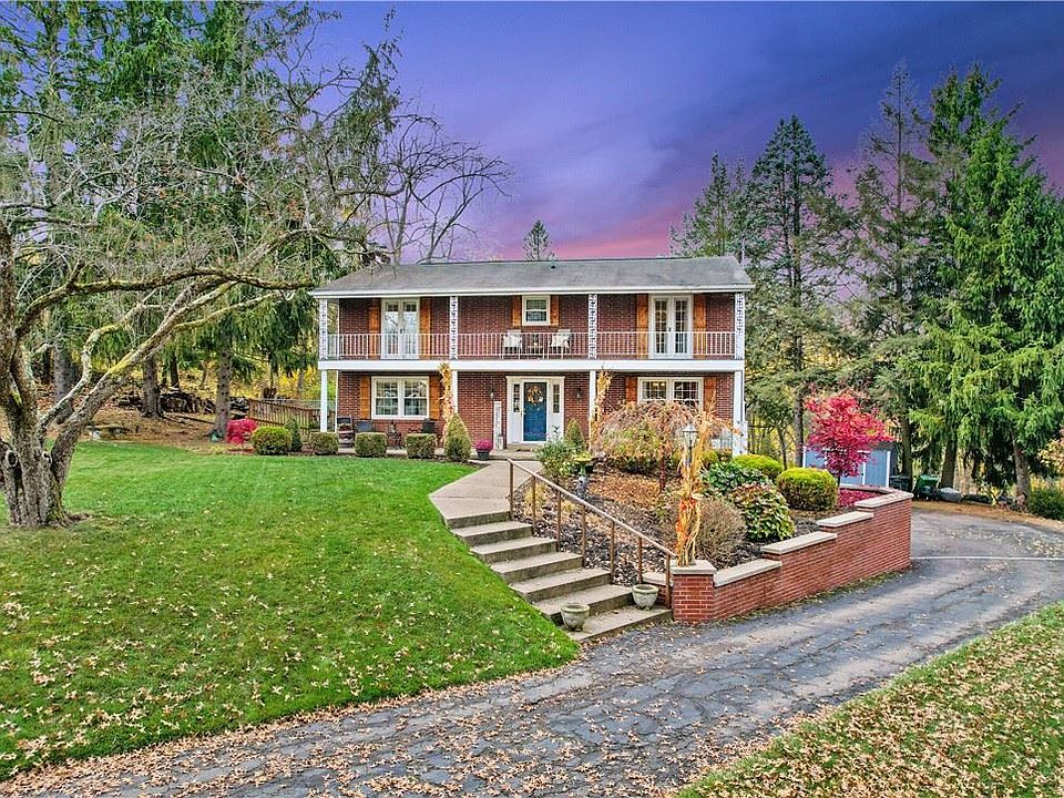 Grand colonial nestled amongst stately trees, this updated home is situated on almost an acre in a quiet cul-de-sac next to Montour Country Club, featuring a heated inground pool and a yard that is completely fenced in. The 1st floor offers, a large LR with a log burning FP as the focal point. Formal DR and an eat in kitchen with granite countertops, french doors lead to an arched covered patio the length of the home overlooking the private tree bordered yard, hardwood floors throughout the first and second floors, and new luxury vinyl floors in the basement area. Owners suite with private bath, 3 additional bedrooms and an updated guest bath, the owners suite and 4th bedroom have french doors to a covered balcony. The lower level, offers additional living space with a log burning fireplace, office space, sun room with gas heater, laundry area, and a workshop. Sliding glass door to the pool surrounded by brick pavers. two car extending garage, new retaining wall and a storage shed.