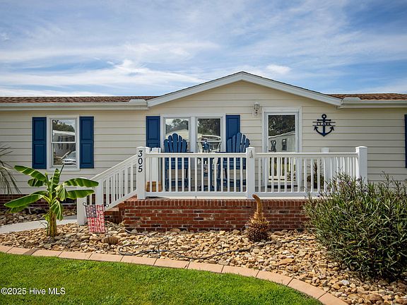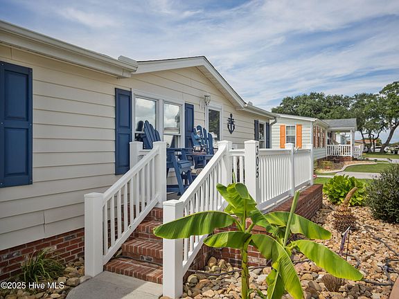 Welcome to Goose Creek Landing—a golf cart friendly neighborhood where neighbors become friends and every day feels like a getaway! This lovingly cared-for and updated home offers 3 bedrooms, 3 full baths, plus a bonus room with ensuite, currently used as a fourth bedroom—perfect for family, guests, or a creative retreat. The spacious sunroom is a cheerful spot to unwind, and the open living area invites everyone to gather around the cozy fireplace. The kitchen has been updated with modern conveniences, including stainless steel appliances and granite countertops, and the dining area is perfect for family meals or celebrations. Step out onto the large, covered deck for summer BBQs, and enjoy the wired storage building for hobbies, tools, or keepsakes. Enjoy the many amenities of this gated, waterfront community: water included in HOA dues, two concrete boat ramps, a fishing pier with a fish cleaning station, saltwater swimming pool, bathhouse, covered picnic area, playground, basketball and pickle ball courts. Just minutes away from the ICW, Emerald Isle, Morehead City, and Atlantic Beach, this home is ready for your next chapter in a welcoming, coastal neighborhood where lifestyle and connection come together.