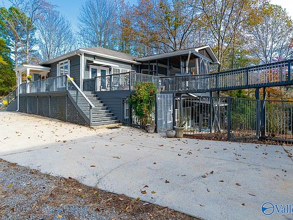 Only 20 minutes from Huntsville. Want a secluded place in the woods by a lake with lake access? Custom built main house geared for entertaining and family living with 10 foot ceilings on the main level, and 9 1/2 on lower level. 3 bedroom, 3 1/2 bathroom, (two with walk-in showers), along with large gathering spaces. Inside: New Granite countertops in the kitchen, freshly painted interior, new 80 gallon hybrid water heater. 300 amp service. Primary suite on lower lever includes an office/art studio. Outside: Enjoy a screened porch, deck, pizza oven and gazebo in a quiet setting. Detached office or apartment, connected by a catwalk. Separate storage building perfect for UTV’s.