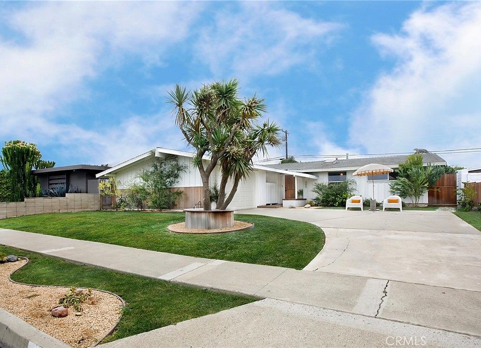 Where charm meets California ease, this remodeled (2024) single-level home sits on one of College Park’s most sought-after streets. This turnkey property features three bedrooms and two full bathrooms, with a long driveway that creates a welcoming first impression and leads through a north-facing Dutch door into a warm, character-filled interior. Two side fences frame the front yard with privacy and contrast—one a block wall to the sidewalk, the other a vertical hardwood batten. Spanning approximately 1,378 square feet, the open layout is enhanced by vinyl plank flooring, beamed ceilings, recessed lighting, and skylights. Designed for laid-back living, the living room is centered around a fireplace and opens effortlessly to the backyard through sliding glass doors. Blending function and style, the kitchen features custom wood cabinetry, built-in dining nook, white quartz countertops, white oak-topped island, and stainless steel appliances, including a KitchenAid refrigerator. At the end of the hallway, the light-filled primary suite opens to the outdoors via Dutch doors and includes a walk-in shower. Set on a 7,285 square-foot lot, the backyard invites connection and relaxation with a built-in firepit, swings, and mature landscaping. Additional highlights include an attached two-car garage, hallway laundry, and bathrooms with ceramic tile counters. All just minutes from Costa Mesa’s best parks, shops, schools, and a short drive to the beach, South Coast Plaza, and John Wayne Airport.