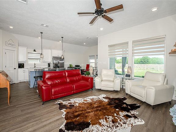 Where Country Charm Meets Modern Comfort Just 12 miles from the heart of Aggieland. A perfect balance of peaceful country living with convenient access to city life. Step inside to find 10ft ceilings, natural light, and a bright open floor plan. An added fireplace that can produce heat or just ambience lighting plus enjoy the beauty of zebra blinds throughout & a bonus having a remote controlled living room blinds that with a push of a button lowers or raise. A stunning kitchen featuring an 8-foot island – enjoy whipping up your favorite recipes or hosting memorable holiday gatherings. Vinyl wood-style flooring and plush carpeting in bedrooms. The moment you walk into the foyer with its beautiful front door you’ll feel right at home. Need storage? This home has you covered -oversized closets, including a primary closet that opens directly into the laundry room for ultimate convenience. A serene backyard that backs up to an open country field, offering peace, privacy, and the calming views only nature can provide. A complete sprinkler system is already installed. Residents of Grand Lakes enjoy high-speed fiber-optic internet included with HOA dues, and for a small additional fee for inside equipment, you can stream movies, work remotely, and stay connected with ease. This home is move-in ready and waiting for you to start your next chapter in comfort and style. Come experience the best of country living with all the modern amenities. Welcome home!