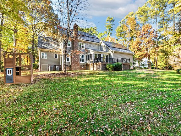 RARE FIND! Classic home nestled in culdesac on a gorgeous 1.06 acre lot. in a neighborhood of gracious custom homes and large lots. This home has spacious rooms and a first floor primary bedroom suite. Also there is a 2nd floor bedroom suite with a total of 4 bedrooms and 3.5 bathrooms. There is a 17'x20' bonus room. The sunroom brings the beauty of the lot inside and has its own heat pump..The oversized deck looks out to a private backyard. The parking pad is oversized. A detached workshop is in the backyard. Some of the notable features include NO HOA, fiber cement siding, city water, city sewer, newer windows, freshly painted interior, new carpet, hardwood flooring, granite countertops, walk in closets, walk in attic storage, walk in pantry, and kitchen island. The lawn irrigation system is connected to a private well which is used solely for irrigation. This home has solar panels.. The street is maintained by Garner. Fantastic location close to beautiful Lake Benson and the White Deer Park and Nature Center. 540 is convenient for commutes and RDU airport. It is 15 minutes to downtown Raleigh and approximately 30 mins to RTP/RDU airport. Don't miss this wonderful home!