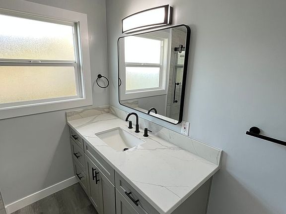 Enjoy a chic and functional bathroom equipped with modern fixtures and finishes.