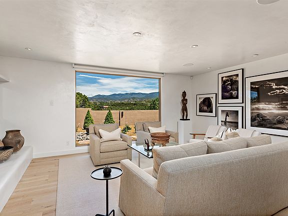 If you're looking for an immaculate, soft contemporary home with jaw dropping mountain views and only minutes to the Plaza, look no further ! Located on the Northside, on a quiet cul-de-sac, this open one-level home has undergone an extensive renovation and has a just completed luxurious new primary bedroom suite with a steam shower and an outside shower ! Designed by top interior designers for their own home nothing was spared in creating a stunning yet comfortable living space. It's like a brand new home with new systems and features including heating and air conditioning, the roof, the kitchen island, cabinetry and appliances, 2 gas fireplaces, Mediterranean wood floors, plaster walls and ceilings, new bathrooms, a large picture window in the great room taking in the mountain views and much more. This is a home to enjoy either on your own or with your guests. Other substantial improvements on the one-acre lot include a gated entry at the street, paved driveway, yard walls around the house and extensively landscaped and irrigated grounds. Well suited for entertaining, the mountain view side of the house has an entertaining portal with a gas fire pit. Beauty, carefree living, quality and style await a new owner!