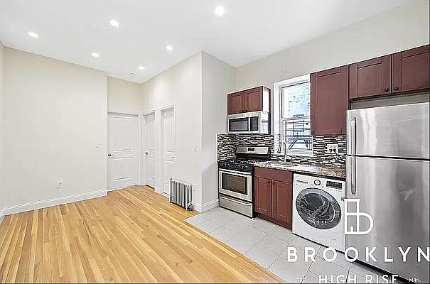 Spacious king size rooms, lets start with that! (See floor plan) Sharp looking two bedroom in the heart of Lefferts gardens with W/D combo in unit. Totally redone, HEAT and Hot water included. Totally redone kitchen, brand name appliances including a W/D combo and microwave among the standard appliances. Two spacious Bedrooms that can potentially accommodate a California king size bed. Windows and closets in all rooms. Showings scheduled at your convenience.