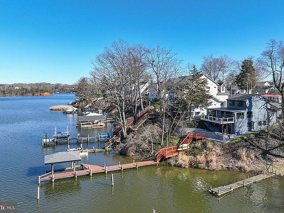305 Cove Road is a beautifully remodeled 3-bedroom home that has the feel of living on a yacht, with wrap-around water views and amazing sunsets. Relax on the spacious deck or set out from the private, multi-slip pier to boat on the South River or out to the Chesapeake Bay. The main level features a great room with new kitchen and walls of windows. There is a separate dining room or enjoy casual meals at the breakfast bar. The main level primary bedroom suite offers lovely water views, a myriad of custom closets, and a gorgeous ensuite bathroom with separate sinks, heated floor & towel rack, and oversized shower. There’s also a powder room/laundry on this floor as well as an office with water views. Upstairs the owners have created a luxurious guest suite with two water view bedrooms, a delightful bathroom, and a coffee bar. There is ample room for a second work area or lounge space for family and guests. There is a detached one-car garage and room for 4 cars in the driveway. There is also an unfinished basement that provides tons more storage, and houses the hot water heater. Most importantly, the owners have done all the improvements for you: new structural supports; new roof, siding, fascia, soffit and gutters; re-engineered deck and steps to water; new water heater, windows, all exterior doors, HVAC, flooring, insulation, kitchen, landscaping, fireplace flue & cap… the list goes on! Sylvan Shores has public water and sewer. It is conveniently located to commute routes and has two community fishing piers, boat ramps, a clubhouse, playground, and lots of social activities. This is the perfect down-sizing home for boaters who want to be out of the flood plain but not have too many steps to the water. Come see this very special spot to appreciate Mother Nature’s ever-changing offering of wildlife and sky colors.