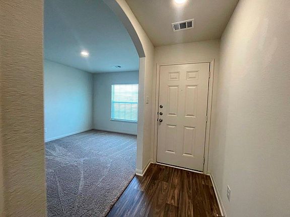 This LGI build comes with modern vinyl plank and carpeting. The kitchen cabinets are a dark wood that looks great with the granite countertops and stainless steel appliances. Notice the recessed lighting and hallway arches.