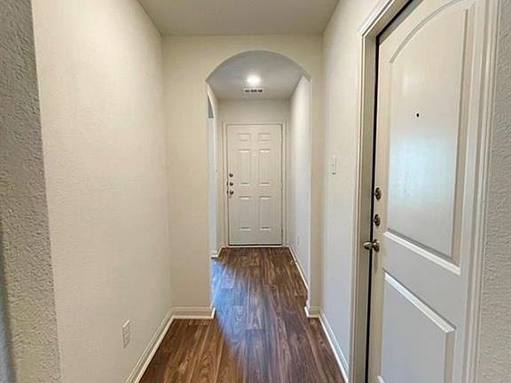 Modern vinyl plankRecessed lightingStainless steel appliancesGranite countertopsHallway arches