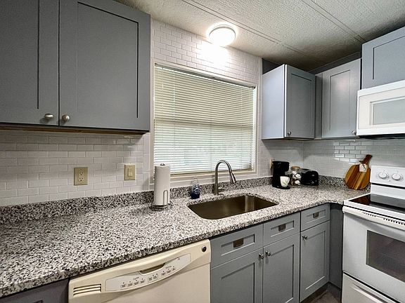 Located on a quiet cul-de-sac in the 55+ gated community of Water Oak Country Club Estates, this fully renovated 2-bedroom, 2-bath home offers modern finishes and turnkey convenience just minutes from The Villages. Inside, you'll find luxury vinyl plank flooring throughout, soft-close cabinetry, granite countertops, and a stylish subway tile backsplash. The kitchen includes all appliances and opens into a bright, comfortable living and dining area. Both bathrooms have been fully renovated with granite vanities and updated showers. The spacious primary suite features a walk-in closet and private bath, while the second bedroom offers direct access to the screened-in patio overlooking green space. Additional highlights include a separate laundry room, utility shed, and generous storage throughout. This move-in ready home is sold fully furnished and includes a washer, dryer, Rumba cleaning device, and electric golf cart. Community amenities include a championship golf course, pools, fitness center, tennis and pickleball courts, clubhouses, walking trails, and an on-site restaurant. Residents also enjoy easy access to nearby shopping, dining, medical facilities, and the daily conveniences of The Villages just minutes away. Schedule your private showing today and experience the lifestyle Water Oak has to offer.
