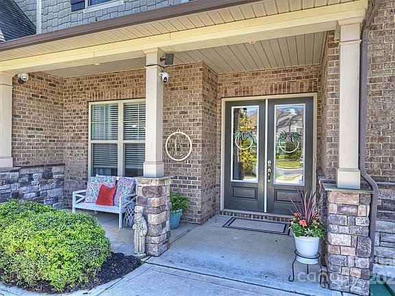 Stately brick, stone and fiber cement home in cul-de-sac with covered front porch conveniently minutes from Indian Land, Fort Mill and Ballantyne! Fabulous open floor plan with two story foyer, sweeping staircase, wide plank floors, expansive family room with coffered ceiling, spacious modern kitchen with oversized island, tile backsplash and sunroom/bar area overlooking, private, scenic yard! Guest room and full bath on main level, secluded office nook, large laundry room, drop zone and butler's pantry leading to dining room perfect for entertaining! The upper level features a serene primary suite with sitting area, spa bath with rain shower, garden tub, and walk-in closet. The bonus room with double doors offers great flexibility, and three additional bedrooms, two with Jack and Jill bath and walk-in attic storage complete the upper level. The oversized 3 car garage offers ample parking and storage. Lots of opportunity for outdoor living with fenced yard, patio and community pool!