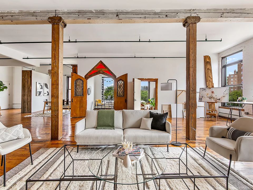 First showings at Open House on Sunday 7/10 from Noon-3pm, by appointment. Please contact listing agent Callan Bergmann to schedule a showing. Welcome to 305 E 140th Street Unit 5B at Bronx Bricks Condominium. This special and authentic, spacious loft of 2,355 sqft offers twelve oversized windows that look out onto charming city views and flood the space with light. The 12-foot ceilings, exposed beams, original 1904 maple hardwood floors, and open floor plan give the space a true sense of character and warmth. The flexible layout currently offers 3 windowed bedrooms, a 5-piece bathroom, and a bonus office/den. There are several custom closets and shelving throughout made out of reclaimed barn wood. There is an abundance of space for a washer/dryer to be installed. There is also plentiful storage with a separate, private 347 sqft storage space located in the basement, where you will also find a shared laundry room. The loft is perfect for live/work buyers and anyone searching for a unique and creative space. Owners benefit from solar panels housed on the buildings roof, helping to keep down monthly electric bills. (The $1,095/month common charges include heat.) There is a J-51 tax abatement which expires in 2026. Bronx Bricks was built in 1904 as a sewing factory. The building was thoughtfully converted into a boutique condominium in 2008 and includes an elevator and only 11 residences spread out over 5 stories. It is also home to Bronx Art Space on the ground floor, and the inviting lobby houses fantastic artwork by some of New York City's most talented artists. The building is a commuter's dream. Just two blocks from the 6 train and a short walk to the 4, 5, and 2 trains. Driving north to Westchester or Connecticut is a breeze and the Metro-North stop at 125th Street is just one stop away. Bronx Bricks is in the heart of fast growing Mott Haven, which is exploding with new development, investor interest, and growth along the Harlem River waterfront. New coffee shops, restaurants, bars, and shops are popping up left and right. This is an exciting time to call the South Bronx and 305 E 140th Street Unit 5B home!