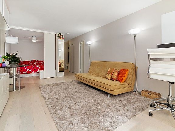 Sunny, quiet and renovated - welcome to 2K! This spacious and chic studio has a low maintenance and a high attention to detail with a stunning contemporary look and comfortable feel. This sun-filled, east facing studio was designed as an oasis in the city. A custom made, floor to ceiling vertical and easily movable divider separates the KING SIZE bed sleeping space from the living and dining area.