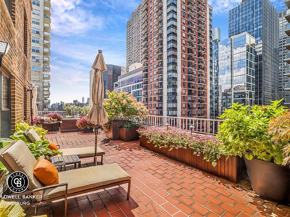 Welcome to Residence 19F at The Hamilton, a beautifully renovated 2-bedroom, 2.5-bath home perched on the 19th floor of a full-service cooperative in the heart of Midtown East. This apartment is a true standout, offering a massive 1,250 sq ft wraparound landscaped terrace—a private outdoor oasis with panoramic views of the Empire State Building, East River, and the downtown skyline. Whether you're hosting sunset cocktails, enjoying morning yoga, or simply lounging with a book, this terrace is your ticket to elevated NYC living.