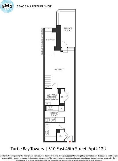 Bright new Gut renovated Spacious Alcove Loft Studio with 12 foot plus ceilings, oversized windows and a Private Terrace with views of the East River, as well as Lofted Space perfect for a home office. The apartment features maple wood floors, Raven Cesar stone kitchen countertops, Wolfgang Opera White tile backsplash, gray tiles kitchen flooring, GE stainless steel appliances, and ample closet and storage space. No Pets allowed. Prewar loft building in the heart of Midtown has 24 hour doorman, live-in super, common roof deck, parking garage attached to the building, storage and bike room. Laundry on floors 3-18.
