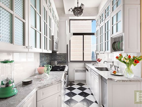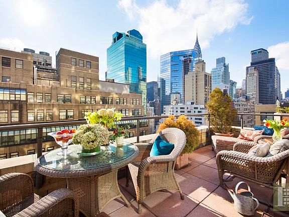 This gracious and bright one-bedroom, with southern and eastern exposures is truly special. You'll want to dine and enjoy the sunshine on the South-facing terrace which measures a generous 20' x 7'. The apartment features crown moldings, decorative trims, a checkerboard stone floor entry, and a wood-trimmed dining room with French doors. There are beautiful East river and city views from every window. The apartment has soaring 11'8" ceilings and greenhouse windows. The windowed kitchen has a traditional flavor with all the modern conveniences including a Viking range, deep stainless steel sink and marble counter tops. The bedroom has an area under the greenhouse windows that is perfect for a home office. There is excellent closet and storage space. The bathroom has granite floors and a lovely Perrin & Rowe sink with towel bars and glass shelves. The building amenities include a 24- hour doorman, live-in super, laundry on floors 3 through 18 (inclusive) with all new washers and dryers, a roof deck, bike room, storage lockers and an attached parking garage. Turtle Bay Towers is a flexible cond-op that welcomes diplomats, is pet friendly, permits pied-a-terre ownership and allows parents to purchase for use by their children. The building does not require a board interview and operates under "condo rules." It is located close to both Grand Central Terminal & the United Nations with excellent options for public transportation, Michelin-starred restaurants and just one block from the Dag Hammarskjold Plaza, which hosts a year round Greenmarket every Wednesday.